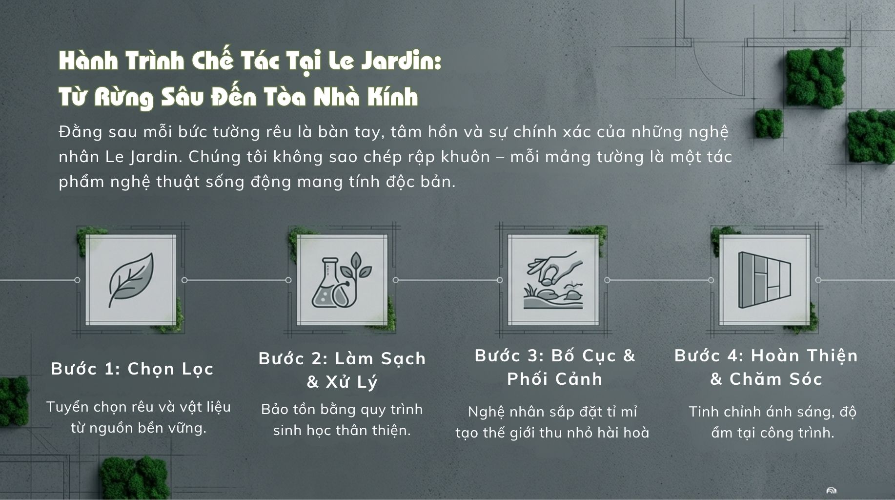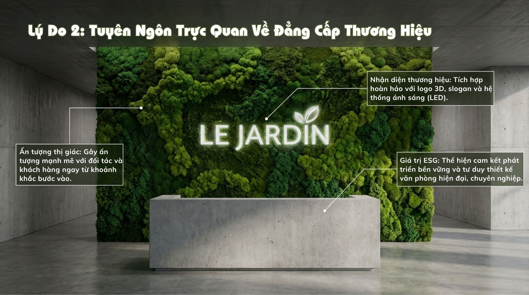 Nếu bạn đang tìm kiếm đơn vị thi công tường rêu chuyên nghiệp, hãy liên hệ Le Jardin để được tư vấn thiết kế phù hợp với từng không gian văn phòng.