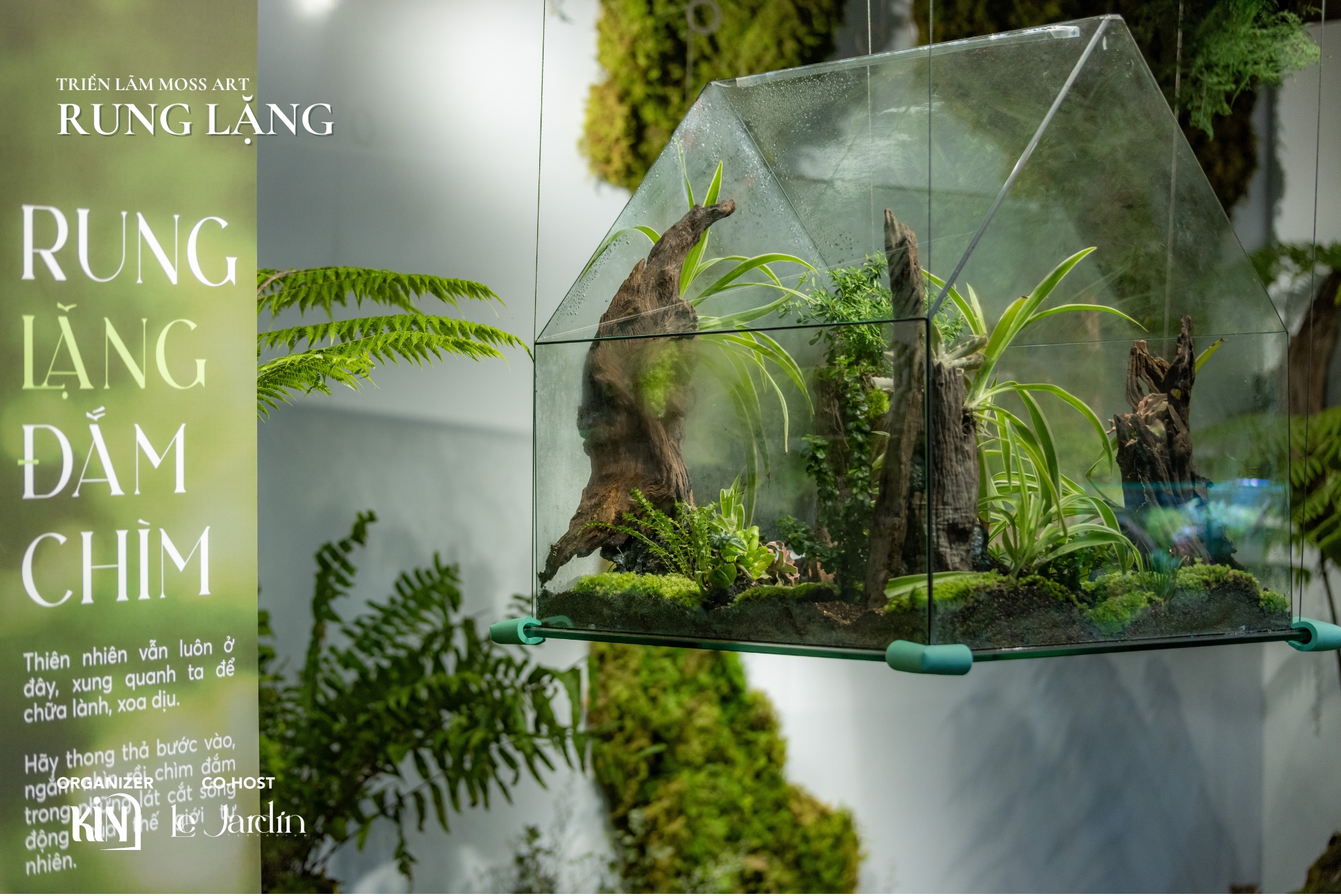 “RUNG LẶNG – WILD SERENITY EXHIBITION” là không gian nghệ thuật do Terrarium Le Jardin thiết kế và thi công, mang thiên nhiên đến gần hơn với con người qua rêu xanh, gỗ lũa và hơi thở của rừng.
