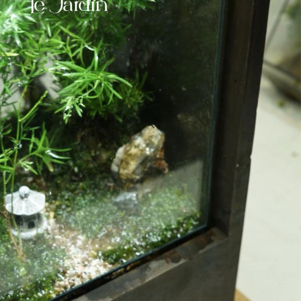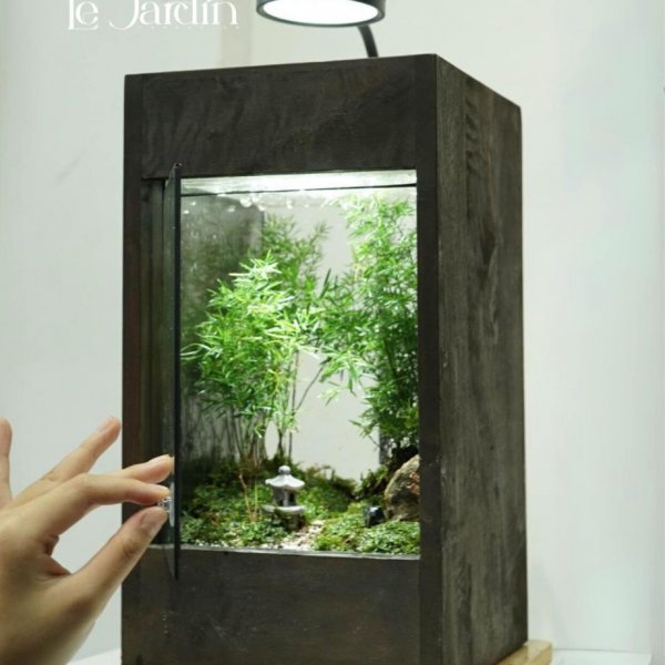 Thực vật: 4-10 loại rêu hiếm tuỳ vào vụ mùa, Dương xỉ Davalia hoặc Dương xỉ lá me, dây leo mini, có thể mix thêm cây màu sắc khác tuỳ ý.