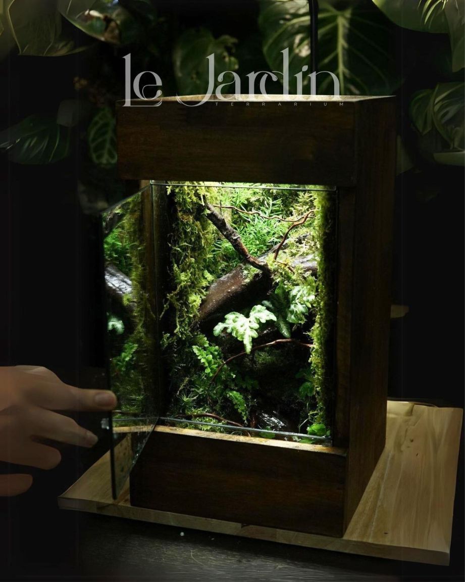 Thực vật: 4-10 loại rêu hiếm tuỳ vào vụ mùa, Dương xỉ Davalia hoặc Dương xỉ lá me, dây leo mini, có thể mix thêm cây màu sắc khác tuỳ ý.