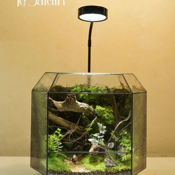 Thực vật: 4-10 loại rêu hiếm tuỳ vào vụ mùa, Dương xỉ Davalia hoặc Dương xỉ lá me, dây leo mini, có thể mix thêm cây màu sắc khác tuỳ ý.