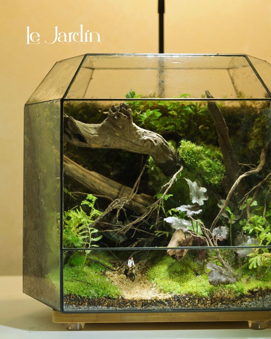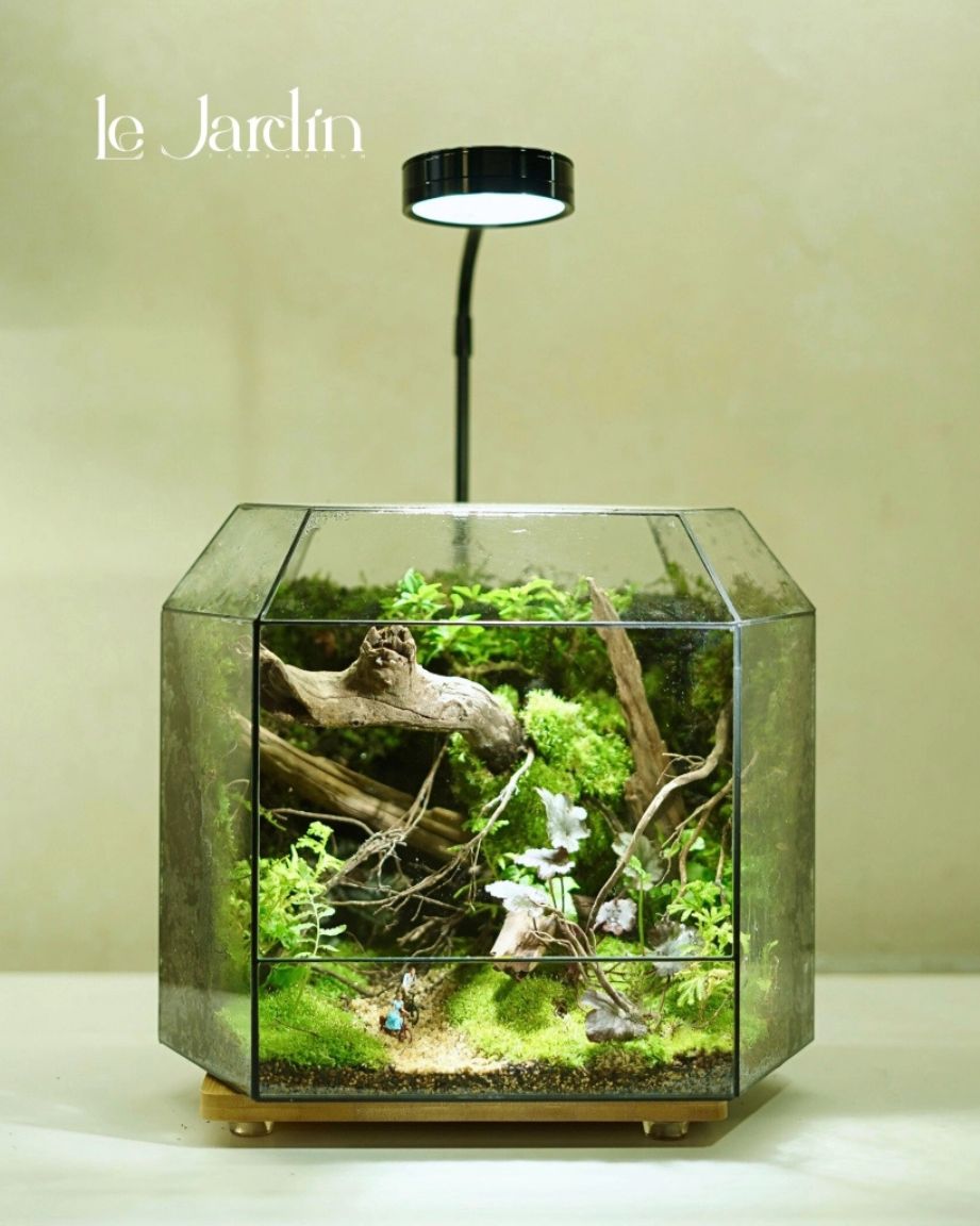 Thực vật: 4-10 loại rêu hiếm tuỳ vào vụ mùa, Dương xỉ Davalia hoặc Dương xỉ lá me, dây leo mini, có thể mix thêm cây màu sắc khác tuỳ ý.