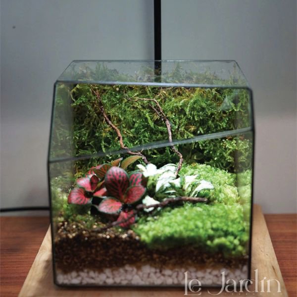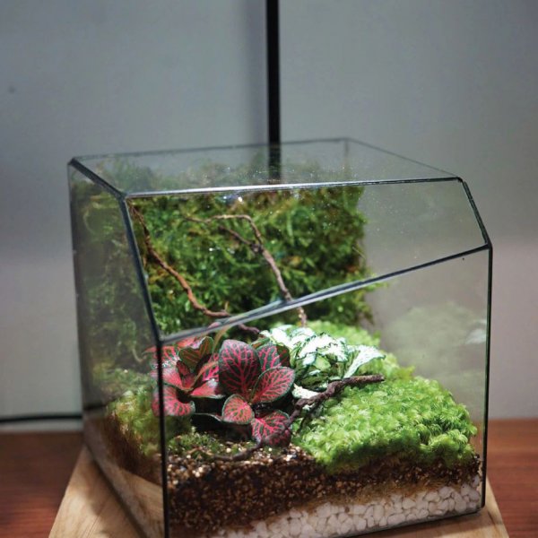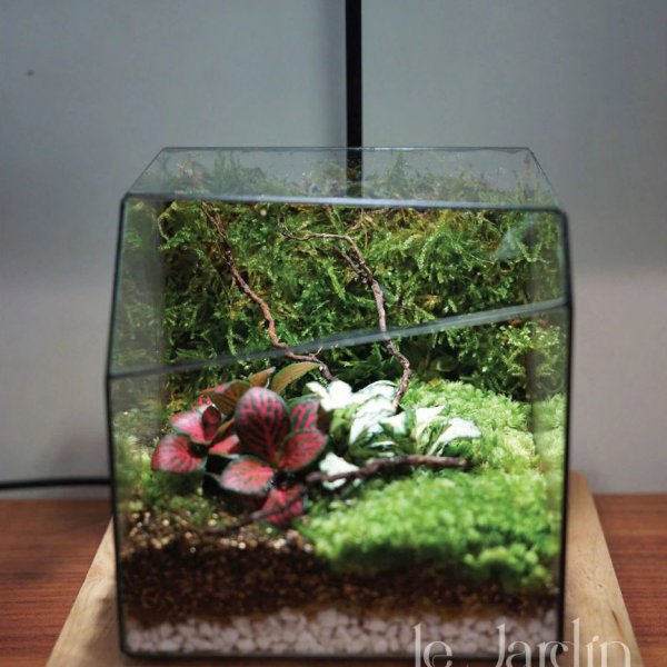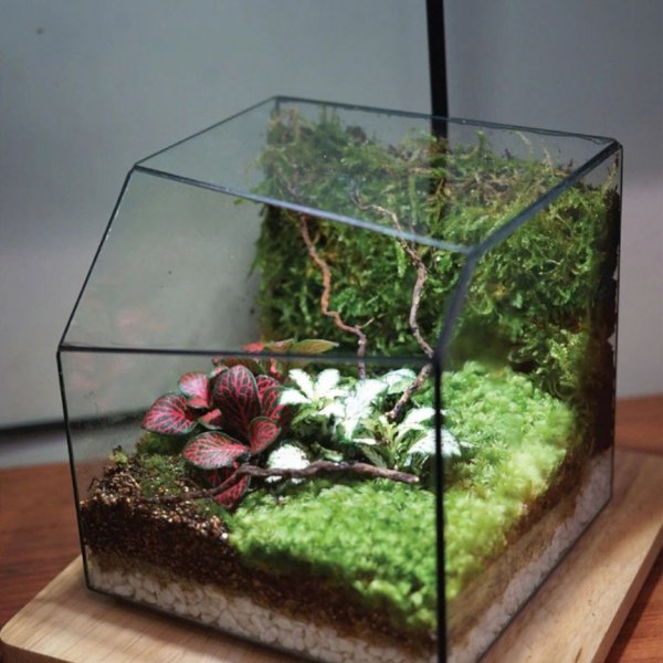 Thực vật: 4-10 loại rêu hiếm tuỳ vào vụ mùa, Dương xỉ Davalia hoặc Dương xỉ lá me, dây leo mini, có thể mix thêm cây màu sắc khác tuỳ ý.