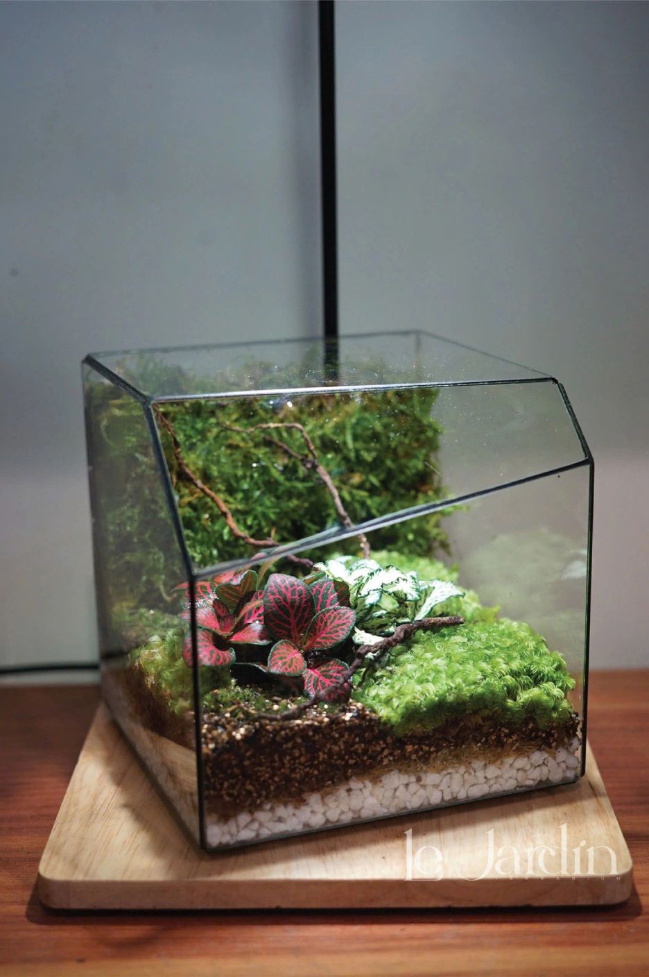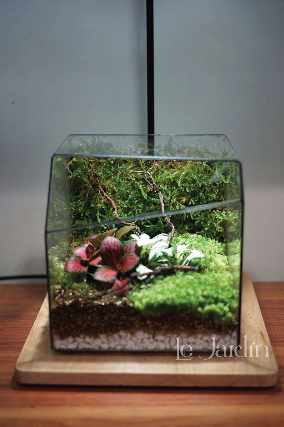 Thực vật: 4-10 loại rêu hiếm tuỳ vào vụ mùa, Dương xỉ Davalia hoặc Dương xỉ lá me, dây leo mini, có thể mix thêm cây màu sắc khác tuỳ ý.