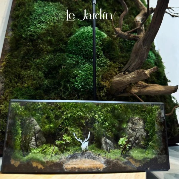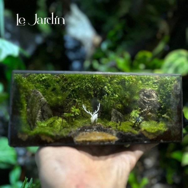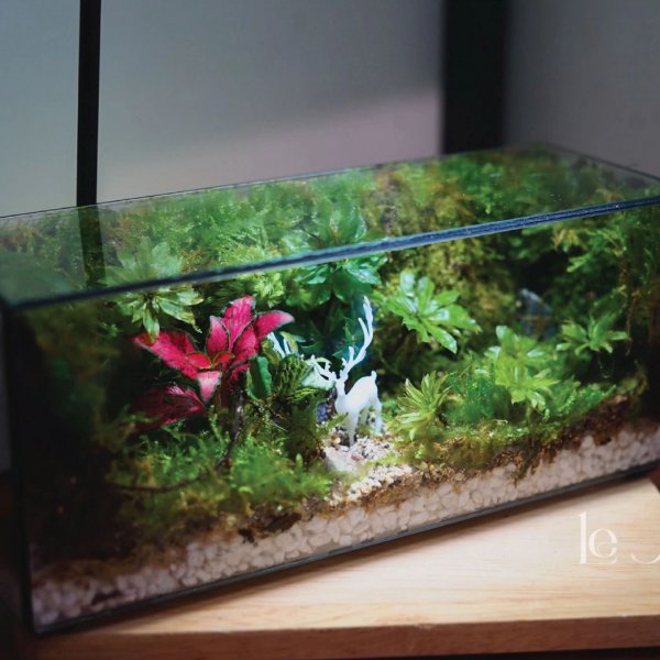 Thực vật: 4-10 loại rêu hiếm tuỳ vào vụ mùa, Dương xỉ Davalia hoặc Dương xỉ lá me, dây leo mini, có thể mix thêm cây màu sắc khác tuỳ ý.