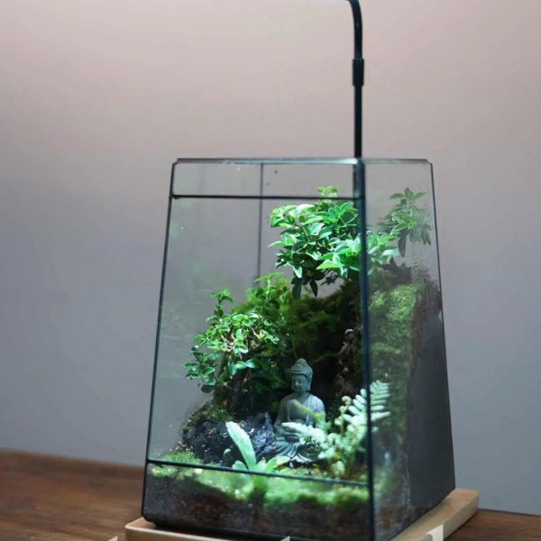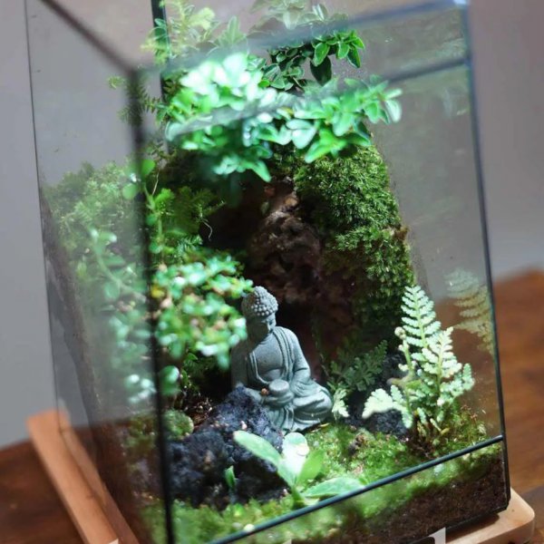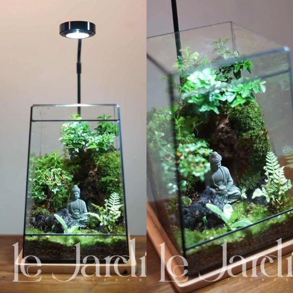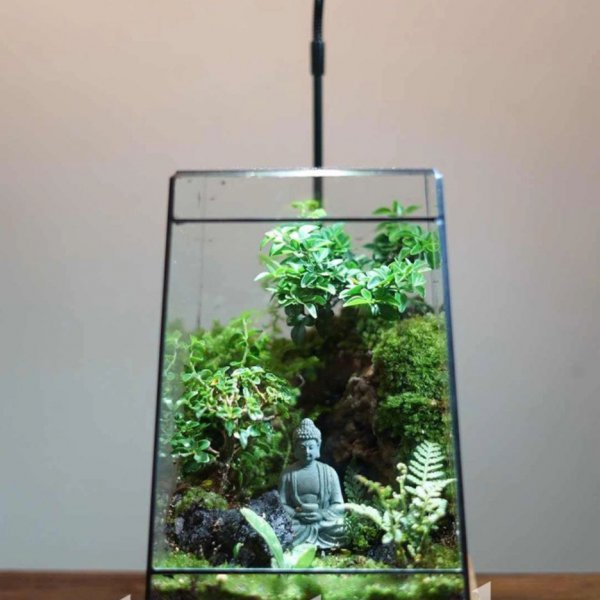 Thực vật: 4-10 loại rêu hiếm tuỳ vào vụ mùa, Dương xỉ Davalia hoặc Dương xỉ lá me, dây leo mini, có thể mix thêm cây màu sắc khác tuỳ ý.