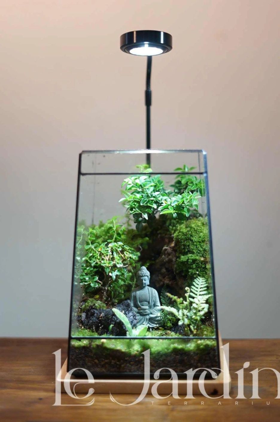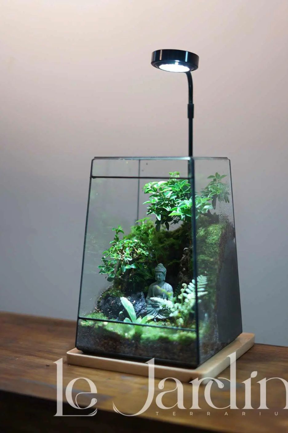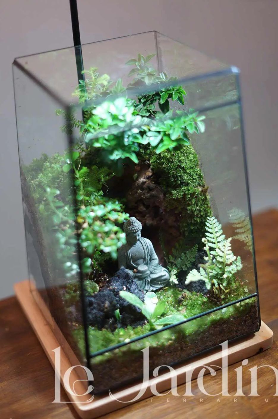 Thực vật: 4-10 loại rêu hiếm tuỳ vào vụ mùa, Dương xỉ Davalia hoặc Dương xỉ lá me, dây leo mini, có thể mix thêm cây màu sắc khác tuỳ ý.