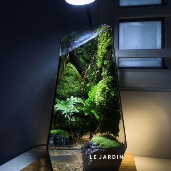 Thực vật: 4-10 loại rêu hiếm tuỳ vào vụ mùa, Dương xỉ Davalia hoặc Dương xỉ lá me, dây leo mini, có thể mix thêm cây màu sắc khác tuỳ ý.