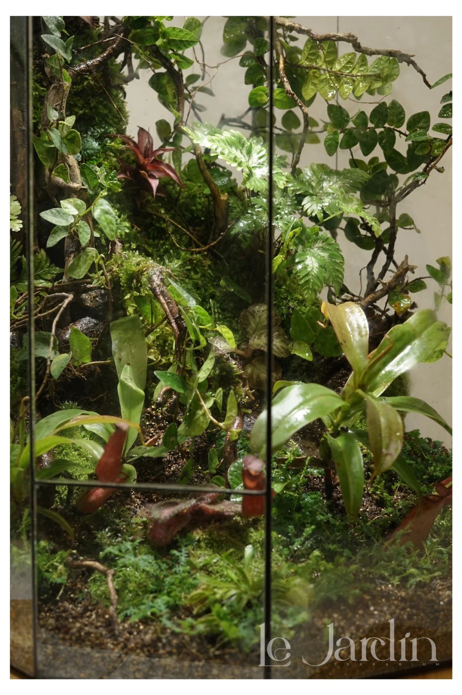 Thực vật: 4-10 loại rêu hiếm tuỳ vào vụ mùa, Dương xỉ Davalia hoặc Dương xỉ lá me, dây leo mini, có thể mix thêm cây màu sắc khác tuỳ ý.