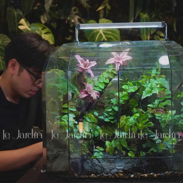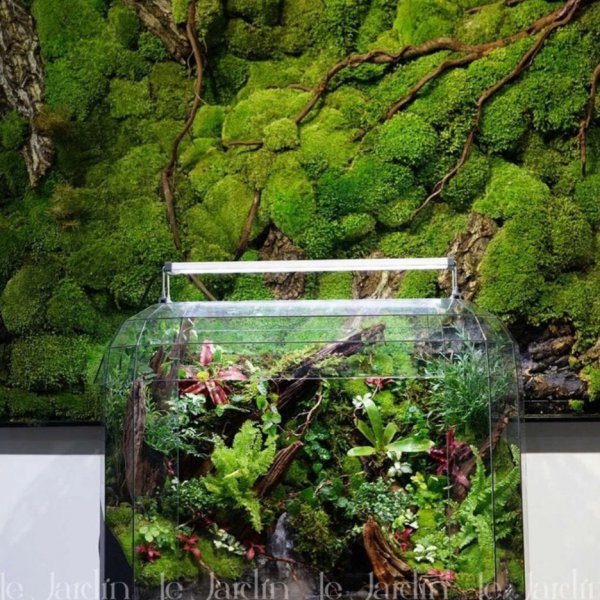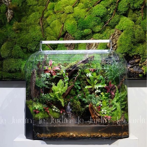 Thực vật: 4-10 loại rêu hiếm tuỳ vào vụ mùa, Dương xỉ Davalia hoặc Dương xỉ lá me, dây leo mini, có thể mix thêm cây màu sắc khác tuỳ ý.