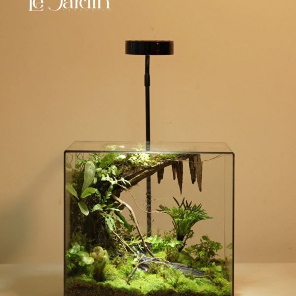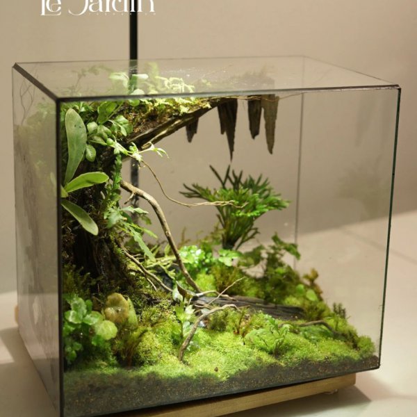 Thực vật: 4-10 loại rêu hiếm tuỳ vào vụ mùa, Dương xỉ Davalia hoặc Dương xỉ lá me, dây leo mini, có thể mix thêm cây màu sắc khác tuỳ ý.