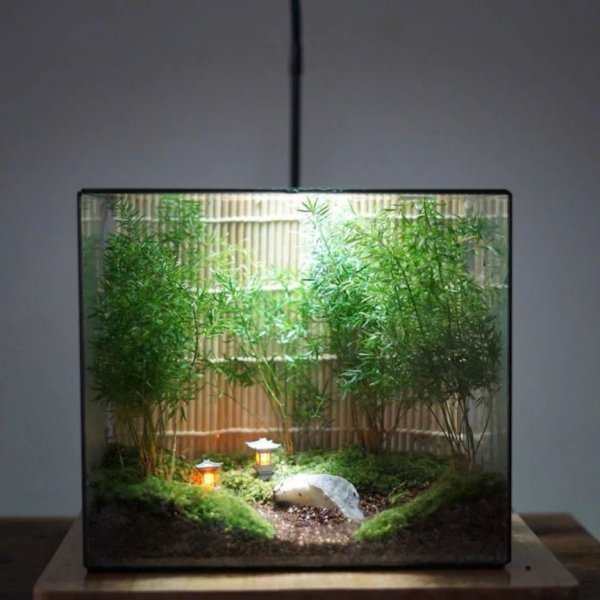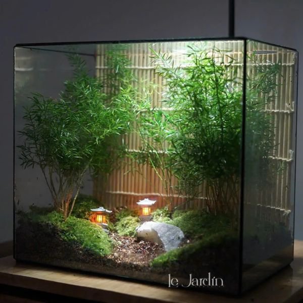 Thực vật: 4-10 loại rêu hiếm tuỳ vào vụ mùa, Dương xỉ Davalia hoặc Dương xỉ lá me, dây leo mini, có thể mix thêm cây màu sắc khác tuỳ ý.