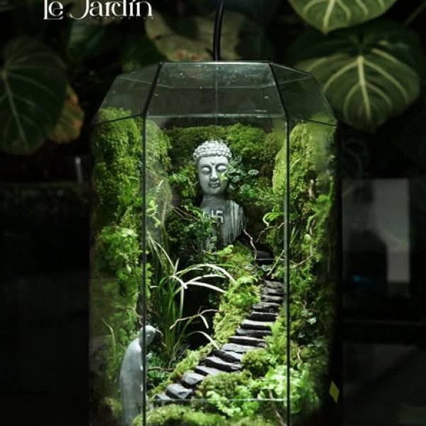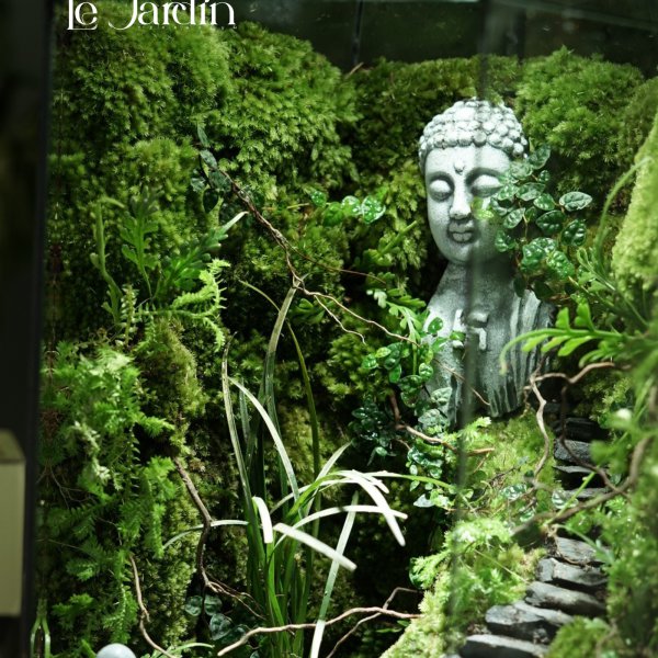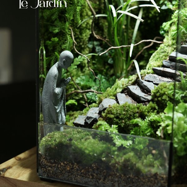 Thực vật: 4-10 loại rêu hiếm tuỳ vào vụ mùa, Dương xỉ Davalia hoặc Dương xỉ lá me, dây leo mini, có thể mix thêm cây màu sắc khác tuỳ ý.