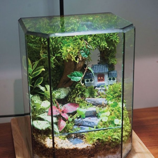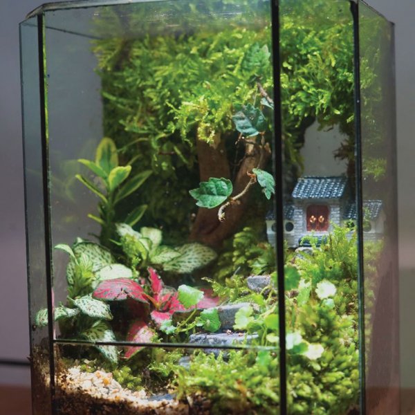 Thực vật: 4-10 loại rêu hiếm tuỳ vào vụ mùa, Dương xỉ Davalia hoặc Dương xỉ lá me, dây leo mini, có thể mix thêm cây màu sắc khác tuỳ ý.