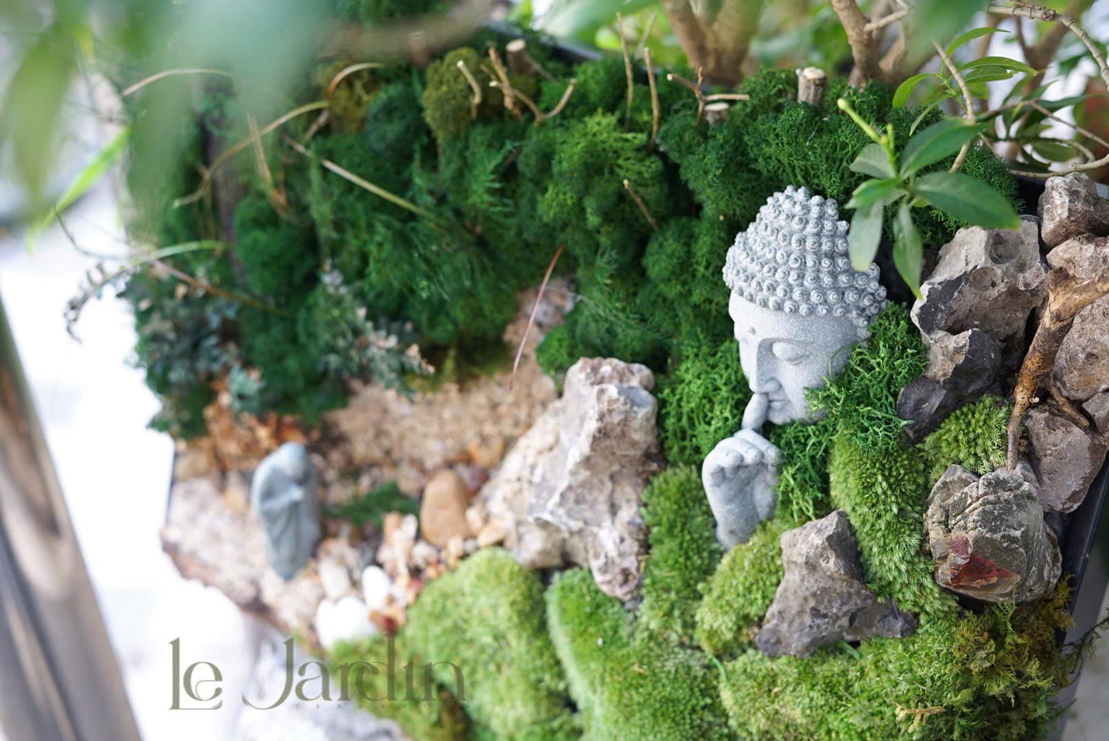 ZERO MOSS hay còn gọi là tiêu bản rêu hoặc rêu xử lý, lấy cảm hứng từ những tiêu bản/ mô hình động vật sống trong các bảo tàng. Le Jardin chọn lọc những loại rêu khô, đã chết trong tự nhiên và giúp chúng hồi sinh trở lại. Bằng việc nghiên cứu để đưa chất diệp lục vào rêu giúp chúng tái tạo màu xanh tự nhiên, ngoài ra còn phát triển những dòng rêu khô vàng trở thành những dòng rêu xanh mềm mại như chúng vốn đã từng.